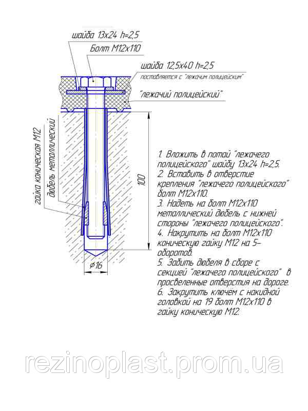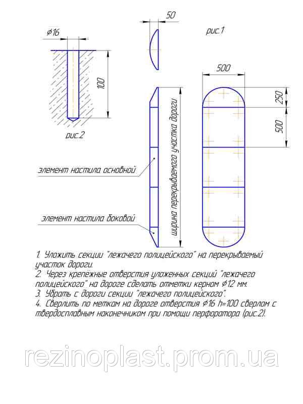 Зразкові схеми кріплення "лежачого поліцейського", а також схеми розташування на дорогах наведено нижче: