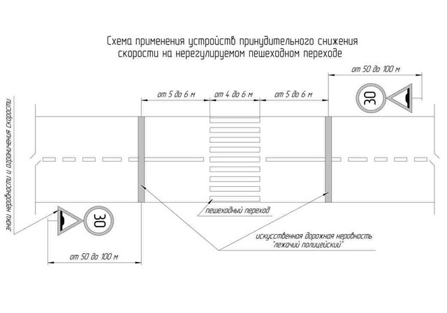 Штучна дорожня нерівність «лежачий поліцейський» ― призначена для укладання на проїзної частини автомобільних доріг поблизу пішохідних переходів і в місцях підвищеної небезпеки, де необхідно примусове обмеження швидкісного режиму.